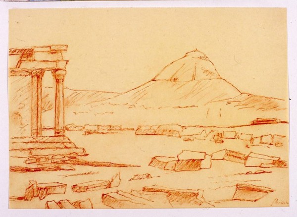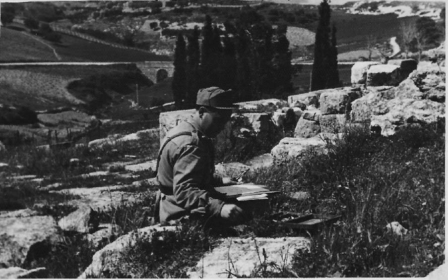 Biasion, tenente a Creta, dipinge tra le rovine del Palazzo di Knosso
