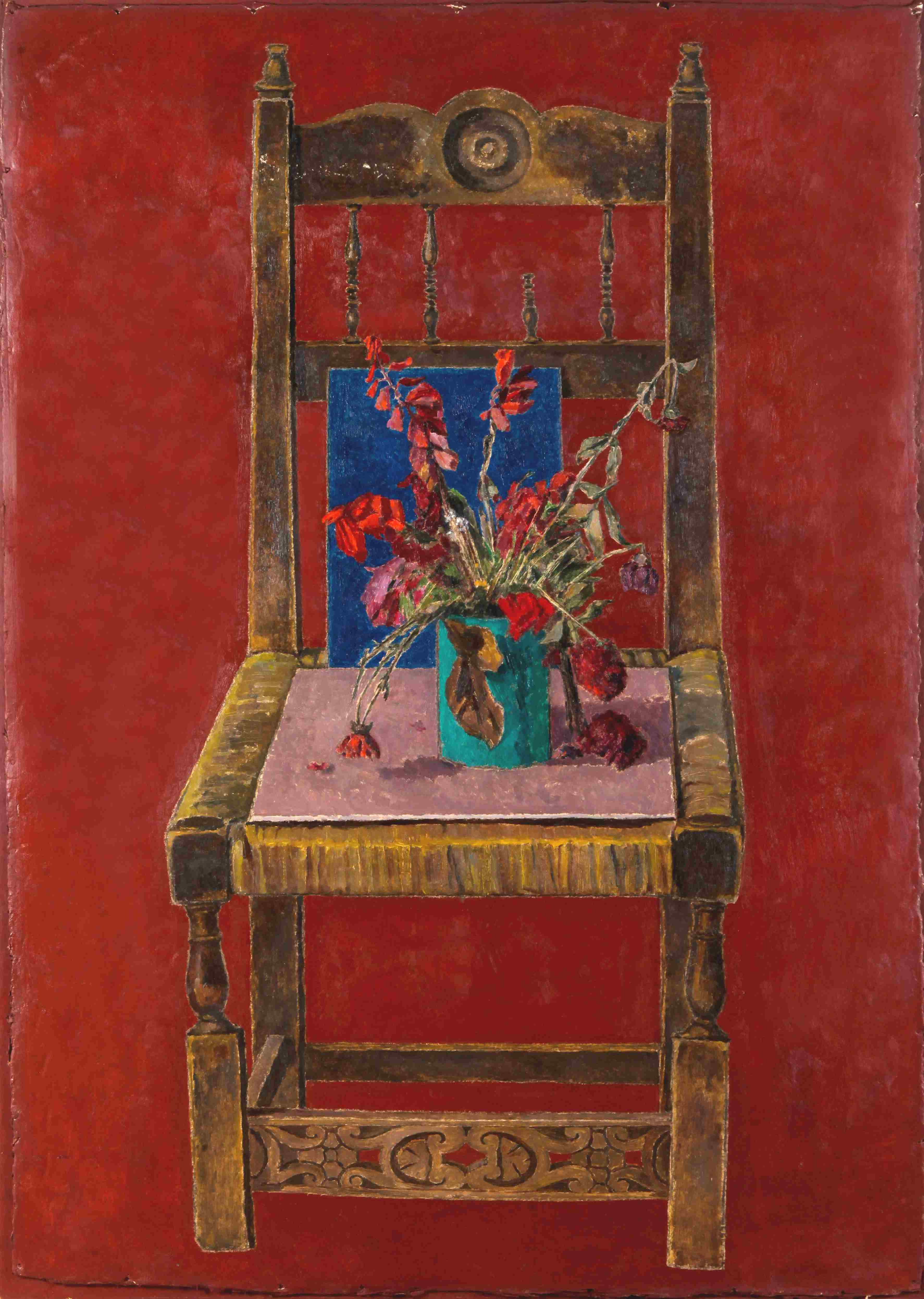Sono molto suggestivi questi interni, accesi del colore che era stato dei Fauve, composti come set cinematografici, a volte giocati sulla sintesi geometrica fin quasi a rasentare l’astrazione, ma senza mai scivolarvi. Sono gli spazi vuoti dell’esistenza, dove anche una poltrona vuota è una protagonista, una presenza forte ammantata nel suo segreto di velluto, da ritrarre con precisione, magari con un vasetto di fiori di campo in grembo. Sono le piccole stanze dell’artista, dove nella solitudine si può mettere in posa persino un quadro, per riguardarlo, rappresentarlo di nuovo, a distanza di tempo, e ritrovarvi una ragione plausibile. C’è un’acquaforte degli anni Settanta che rappresenta il dipinto di una casa di periferia: un quadro di medio formato, appoggiato su una sedia impagliata, come se fosse uno specchio, in cui l’artista ha voluto riflettersi per rivedere non il proprio volto, ma il proprio sguardo, ciò che un tempo aveva scelto di guardare. Nella compostezza immobile della combinazione tra interno e esterno, un autoritratto sarebbe stato meno esplicito.
